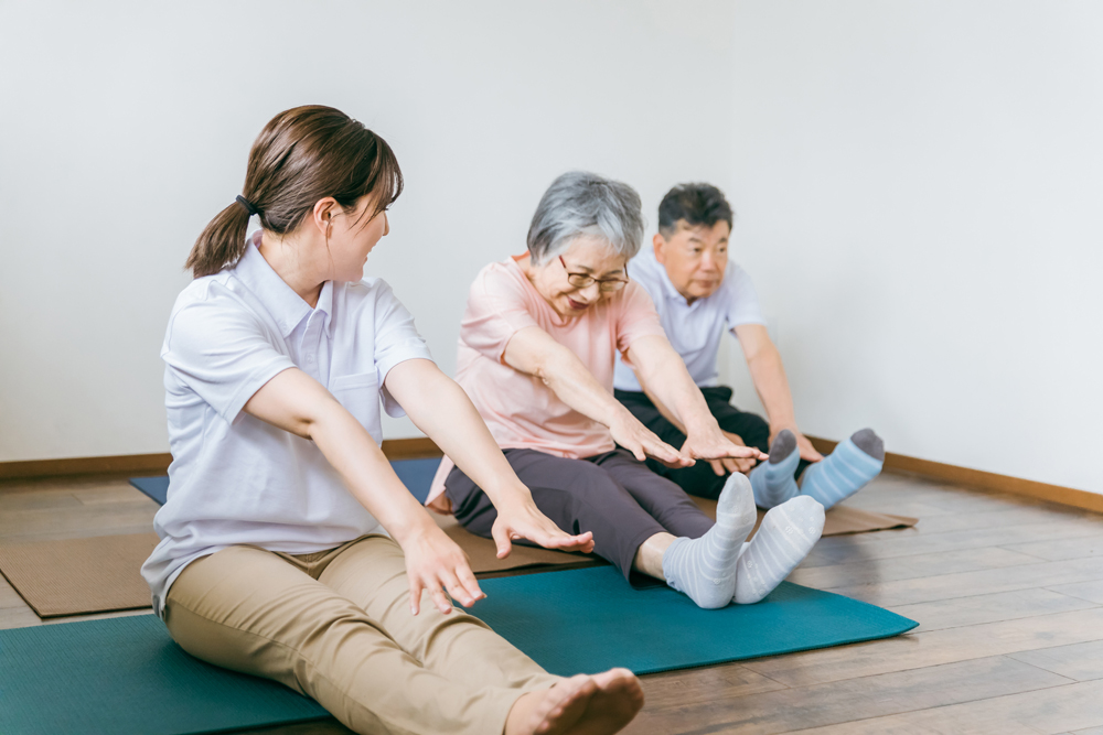退院後の体力回復や、通院が難しい方の継続的なリハビリを支援。歩行訓練や関節の柔軟性維持、筋力トレーニングはもちろん、転倒予防や福祉用具のアドバイス、生活環境の改善提案なども行います。